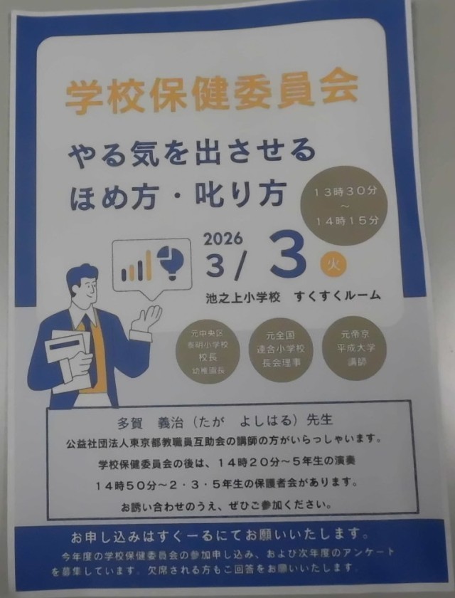 3月3日(火)、本校のすくすくルームにおいて、学校保健委員会を開催いたしました。...