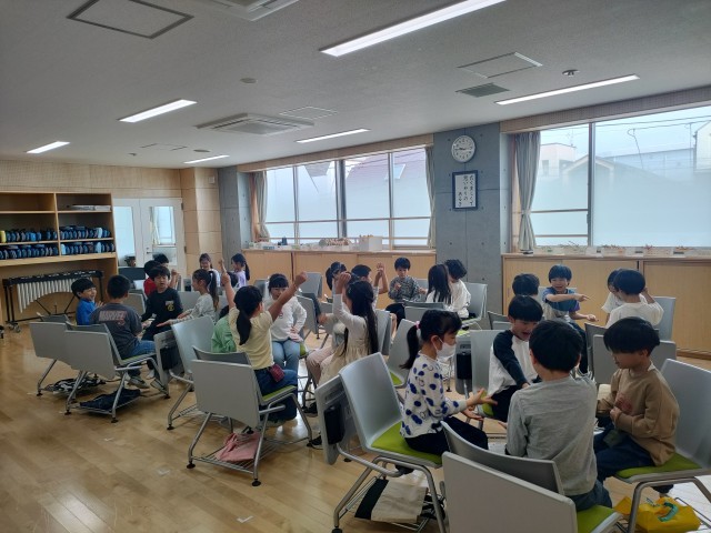 2年生が音楽の時間に「おちゃらかあそび」に取り組みました。友達と向き合い、手を合...