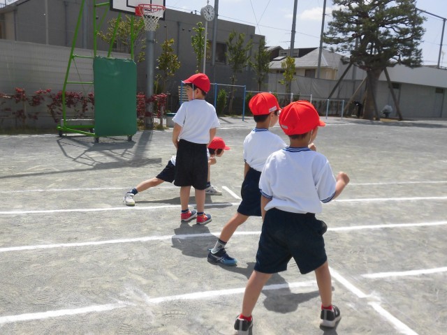 かけっこの練習です。本番では時間を計測します。速く走れるかな。