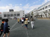 子どもたちは中休みの初めにマラソンをしています。兄弟で一緒になかよく走っている人...