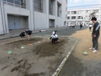 5年生の授業は体育です。走り幅跳びの授業です。前回と比べて、力強い踏切ができてい...
