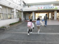 子どもたちが登校してきました。北風が吹き「さむい!」と、子どもたちは言っています...