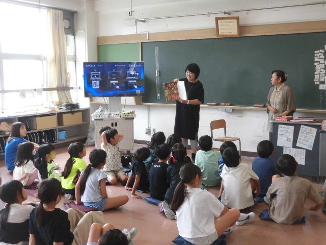 3年生の教室には「すばなしの会」の方々がいらしてくださり、読み聞かせをしてくれていました。子どもたちは「すばなしの会」の方々の話に聴き入っています。お話を楽しんでいる3年生でした。