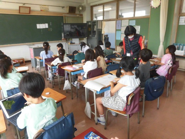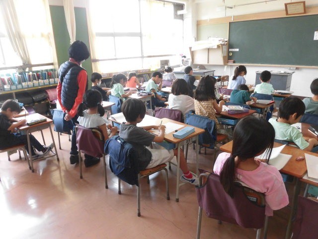 夏休みのことについて、日記の形式で文章を書いています。楽しみにしていることを子どもたちは嬉しそうに文章にしています。絵を添えている人もいます。「読んで、読んで。」たくさんの人に声をかけられました。