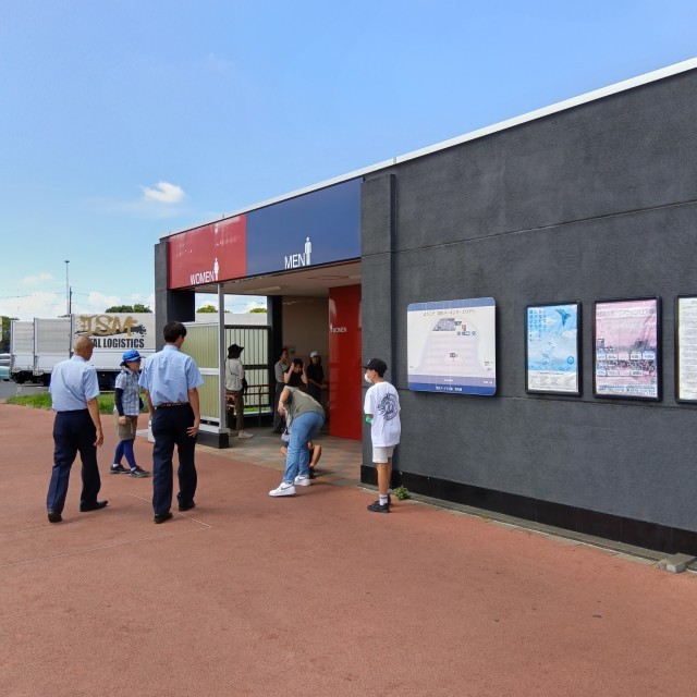 事故渋滞があり、時間がかかってしまいました。トイレ休憩です。混んではいましたが、こどもたちはバスレクなどで楽しく過ごしていました。