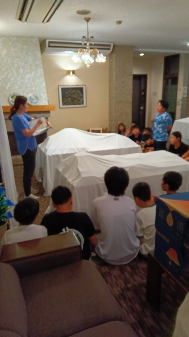 2日目が終わろうとしています。室長会議の時間です。各班からの今日の反省、そして明日に向けての確認を行いました。室長会議で出たことを、明日の1日に行かしてほしいと思います。これから室長会議ででたことを各部屋で共有します。