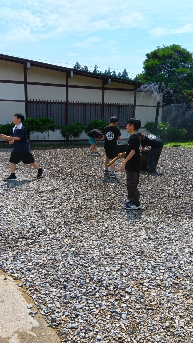 池尻の子どもたちを探して歩いているのですが、なかなか見つけられません。子どもたちは、どこに入っているのでしょう。ミストの下でパンフレットを見ている人、水鉄砲で遊んでいる人がいます。