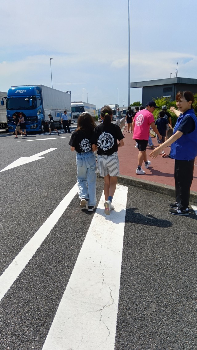羽生パーキングエリアに着きました。トイレ休憩です。バスを降りた瞬間、ものすごい暑さにびっくりしてしまいました。日光がどれほど過ごしやすかったのかが分かりました。アブリで調べたら、3時20分学校着の予定になっていました。