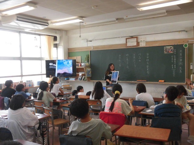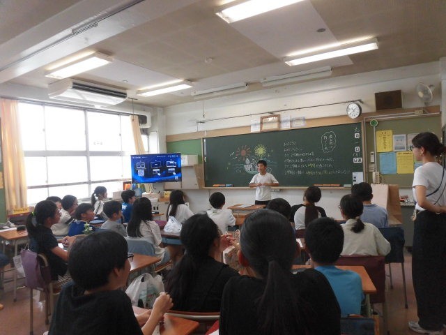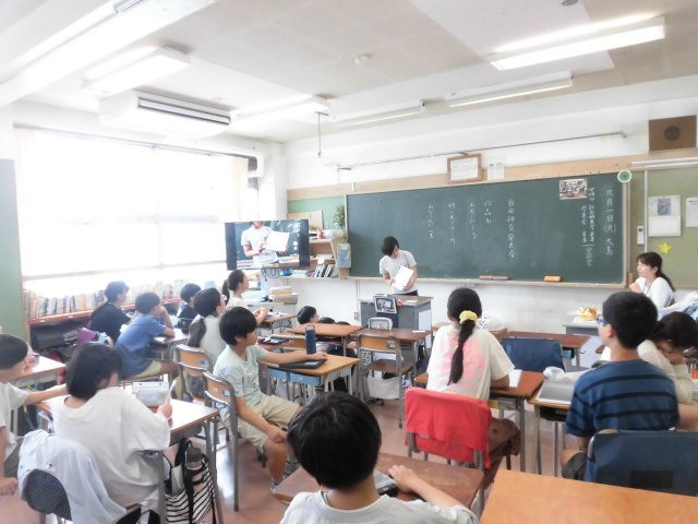 前に出て自分の作品の説明をしています。さすが6年生、説明の仕方も一人ひとり工夫されています。いろいろな視点からの作品があり、話を聞いていてもとても面白いです。