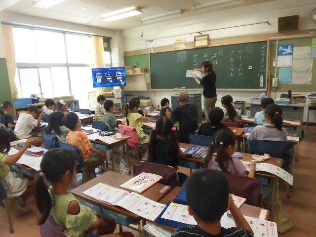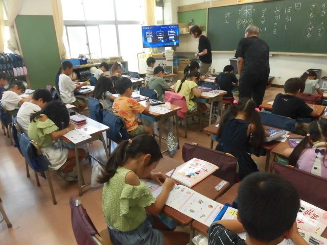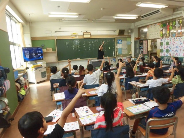 子どもたちは漢字ドリルを使って、「木」という漢字の練習をしています。読み方、意味、書き順などを確認し、空書きをします。そして最後に、ドリルに鉛筆で書いていきます。1年生は、これからもたくさんの漢字を学習します。