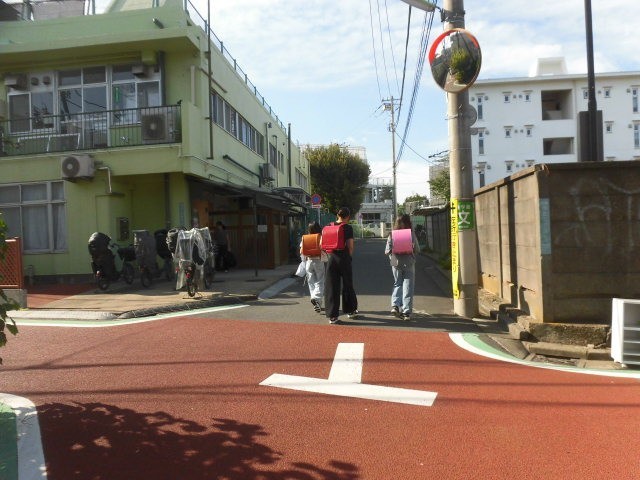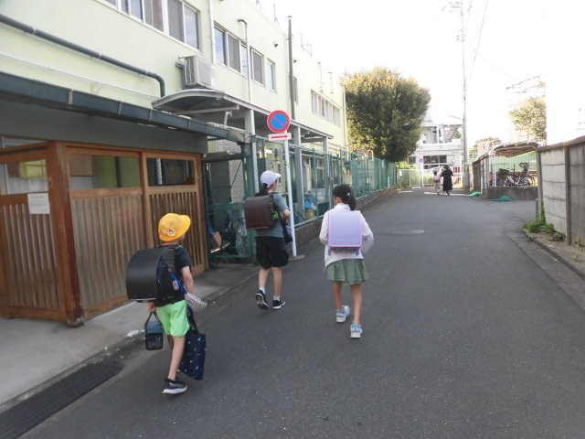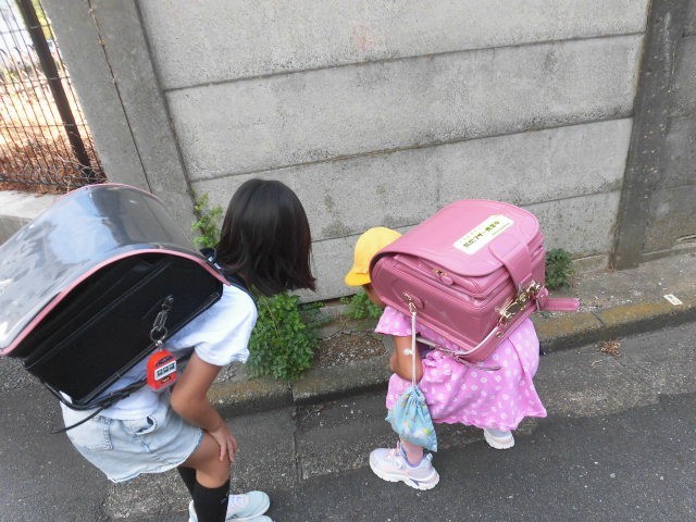 まだまだ暑い日が続きます。子どもたちが登校してきました。日なたを歩いている子どもたちはとても暑そうです。