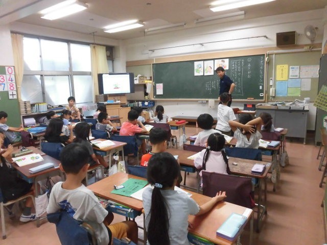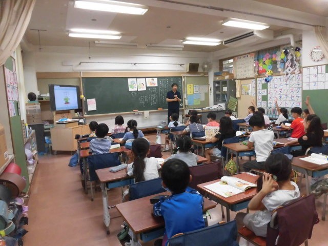 1年生の授業は道徳です。植物を育てることをテーマにしています。