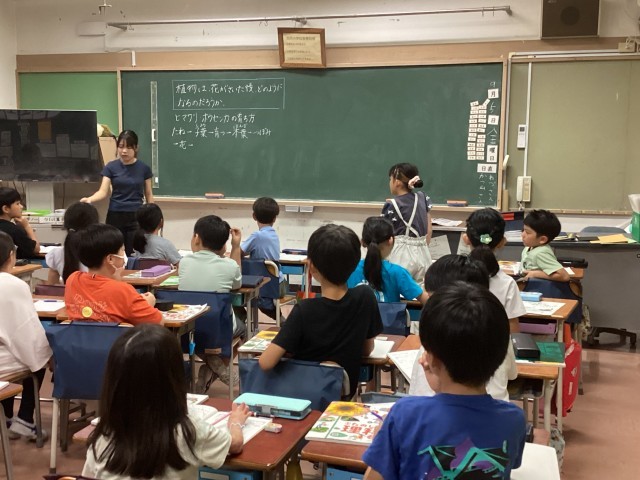 ひまわりを取り上げて、植物の生長について学習を行いました。