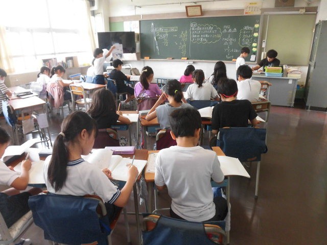 子どもたちは一人ひとりわり算の計算を行っています。教室の中はどちらのクラスもとても静かです。出来上がった人は先生に見てもらっています。静かに計算に取り組む子どもたちです。