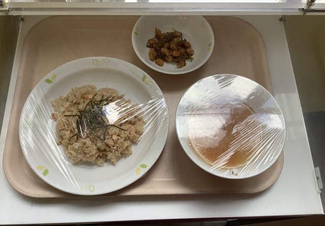 牛乳・鮭ご飯・大豆とじゃこの甘辛揚げ・冬瓜汁