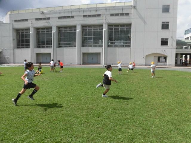 校庭で子どもたちが走り回っています。先生も走っています。校庭で思い切り走る子どもたちを見ると、なんだかワクワクします。