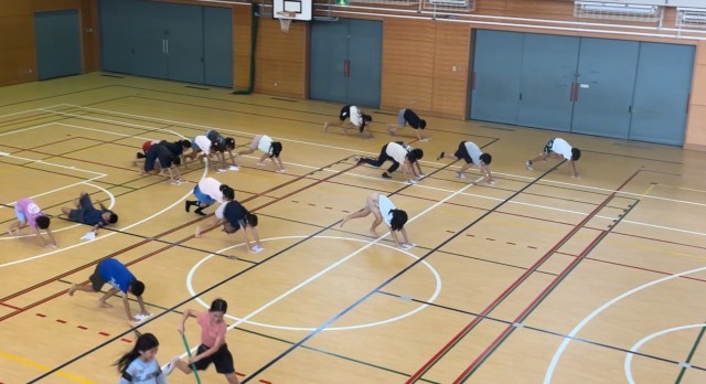 テントを片付けた後は使った体育館をみんなできれいに掃除をしました。
