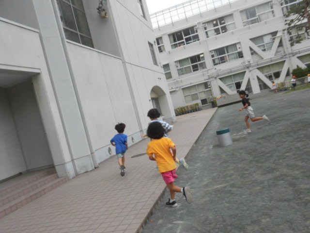 中休みは暑さのため外遊びはできませんでしたが、中休みは日が少しかげったので、外遊びをすることができました。