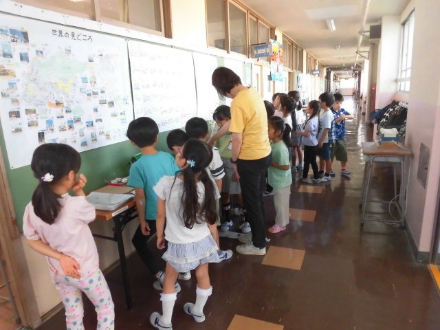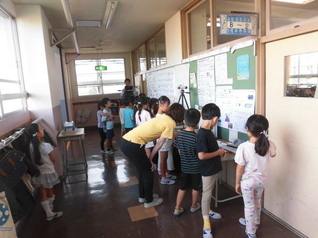 1年生は3階の自由研究の作品を見て回っていました。前にも見学をしていたようですが、再度見学をしているようです。