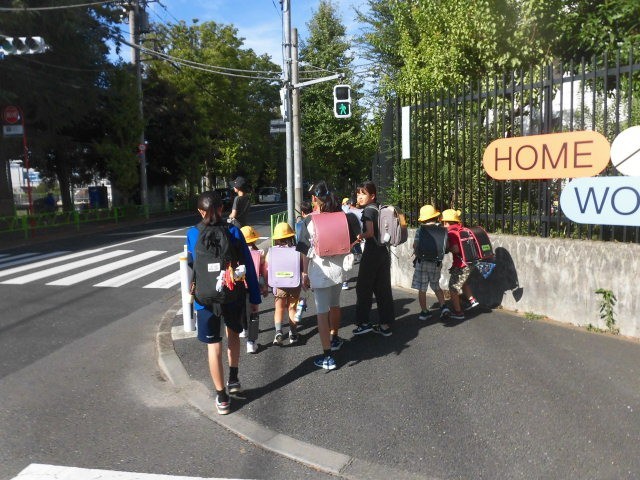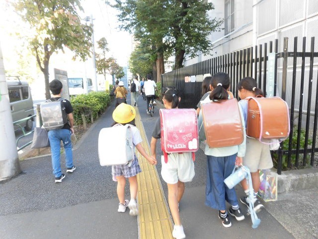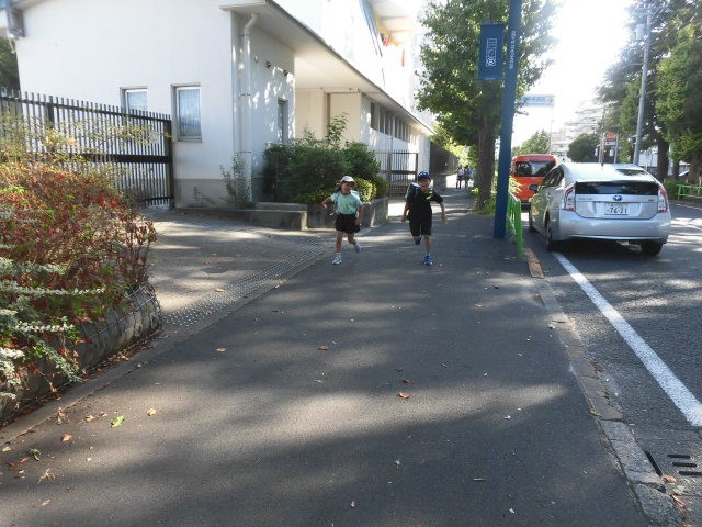 友だちと走って学校に向かっている人もいます。元気に登校するのはとても嬉しいのですが、転んだらたいへんなので、走らないようにしてくださいね。
