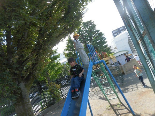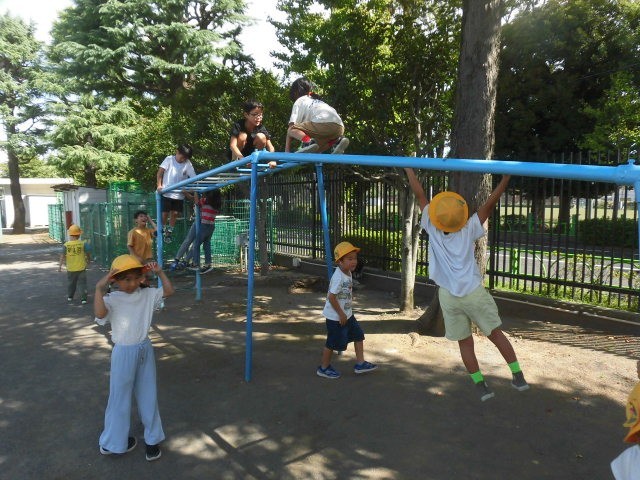 子どもたちが校庭に出てきました。今日は子どもたちとうんていで遊びました。子どもたちはすいすいと棒をつかみ進んでいきます。うんていの上に乗ってしまう人たちまでいました。見ていて怖い感じがします。しかし、子どもたちは怖がることなく上にいます。子どもたちはすごいです。