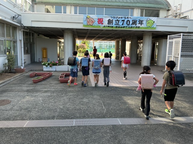 気持ちの良い秋晴れの中、子どもたちが元気に登校してきました。