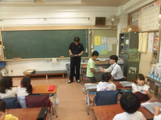 もらった子どもたちはとてもうれしそうです。これから1年生もタブレットでの学習が始まります。