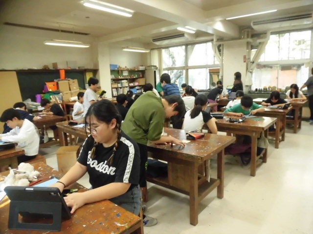 直線と曲線をうまく混ぜながら作品をつくっている人が多くいます。細かなところまでていねいに仕上げています。さすが6年生です。