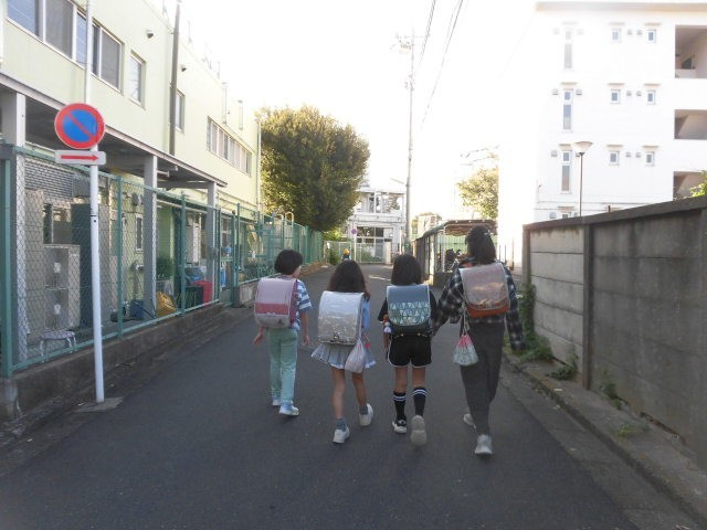子どもたちが登校してきました。早朝は寒かったのですが、お日さまが出てからは、少し暑く感じます。上着を着てきた人は、「ちょっと、暑いなあ。」と言っています。