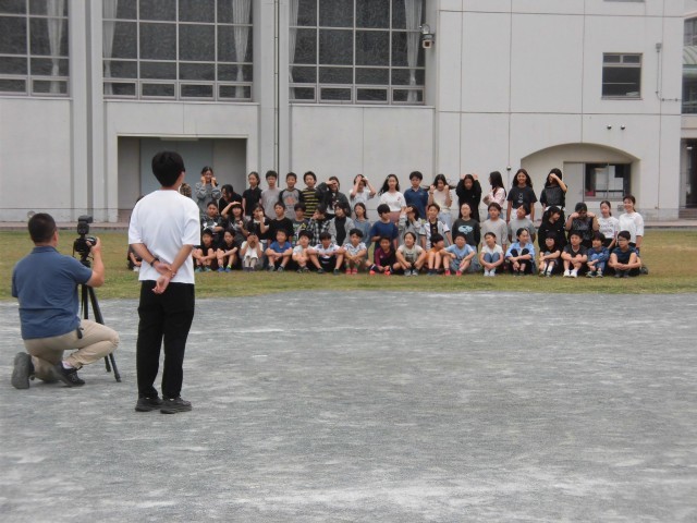 6年生は校庭で卒業アルバムの写真撮影をしていました。学年集合写真を撮った後にはクラス写真を撮りました。あいにく風が強く髪の毛の乱れを気にしている人がたくさんいました。しかし、撮影の瞬間はいい笑顔を見せていた6年生です。