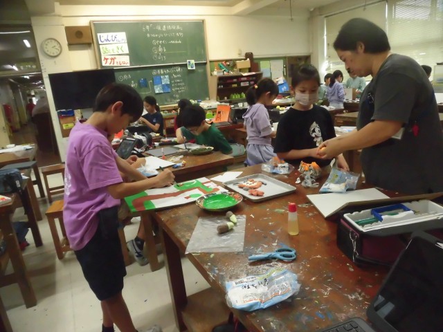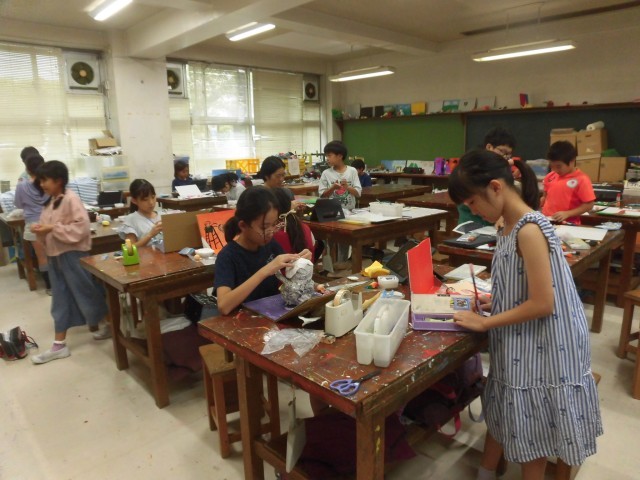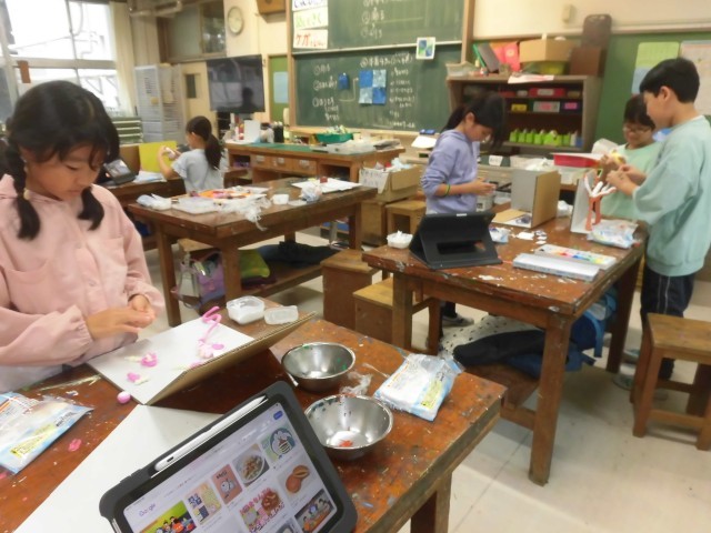 4年生の授業は図工です。一人ひとり自分で選んだ本の一場面を想像し、立体作品として表しています。