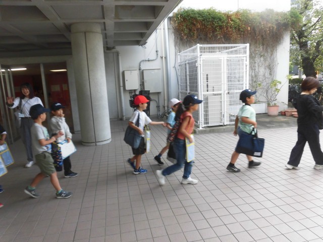 今日、2年生は町まちたんけんに出かけます。近隣のお店や施設を各グループごとにまわります。各グループには保護者の方々がついてくださります。