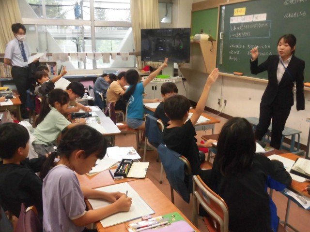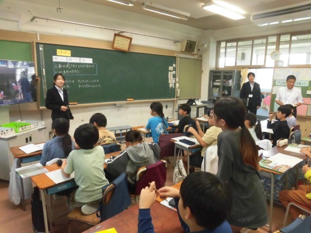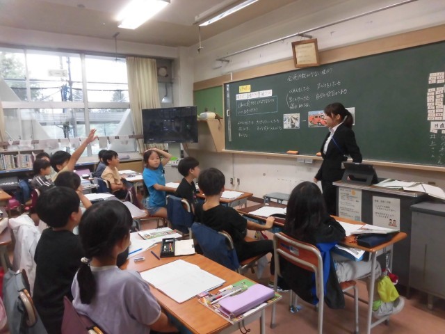 3年生の授業は社会です。消防署の学習です。世田谷区内の1年間の火災の件数は、150件近くです。その中で、全焼にまで至ってしまうのは数件だそうです。どうして、全焼する数はそんなに少ないのでしょう。