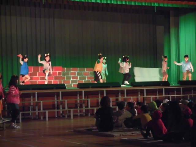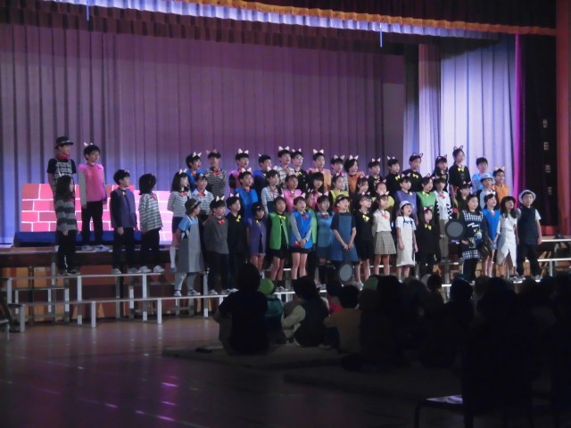 3年生の演目は「のらねこストーリー」です。敵対し合っていたのらねこの2グループがふとしたことをきっかけに仲が良くなっていきます。