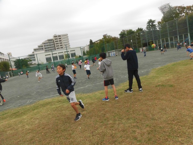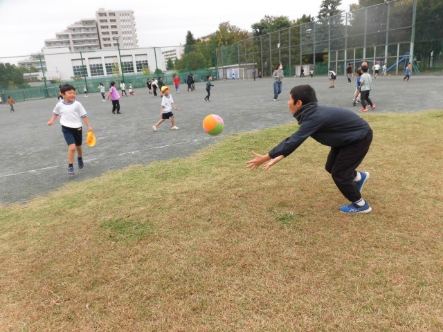 子どもたちが校庭に出てきました。1年生とボール遊びをしている6年生がいます。優しくボールを投げてあげたり、わざと当たってあげたりしています。1年生も6年生もとてもすてきな笑顔です。