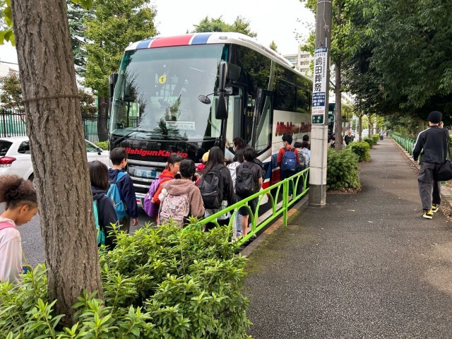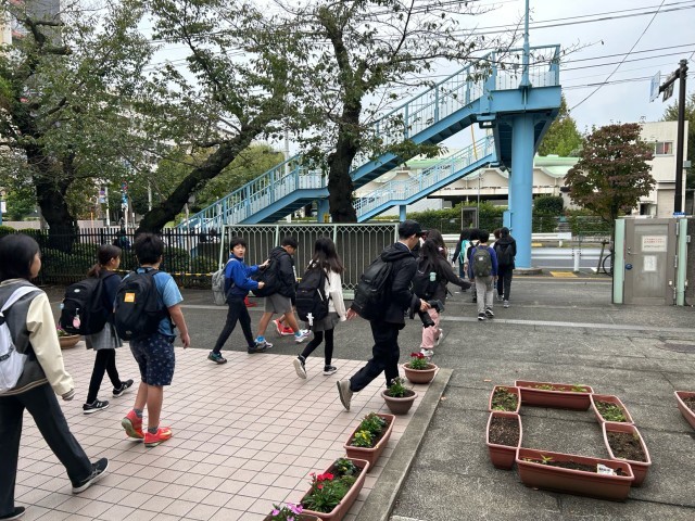 今日は5年生の社会科見学です。いつもより早い登校時刻ですが、子どもたちはみんな元気に登校しています。