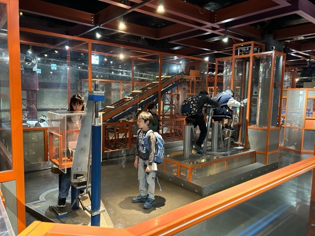 一生懸命自転車をこいで、何かを持ち上げようとしている人もいます。