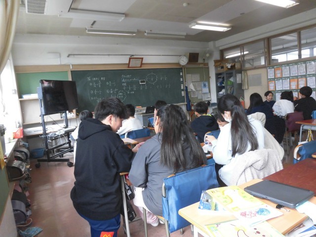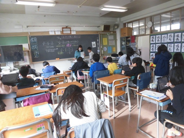 5年生の授業は算数です。分数の約分の学習です。分母の数を大きくなると、公倍数を見つけるのが難しくなります。しかし、一人ひとりしっかりと問題に取り組んでいる5年生です。