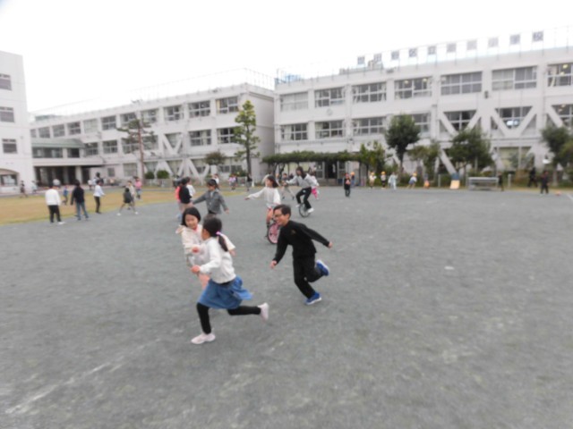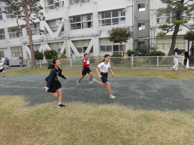中休みになりました。子どもたちが校庭を走っています。朝は肌寒く感じましたが、子どもたちは元気です。