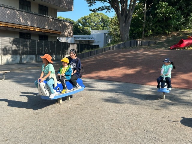 お弁当のあとは、公園で遊びます。いろいろな遊具に子どもたちは大喜びです。
