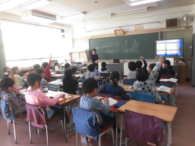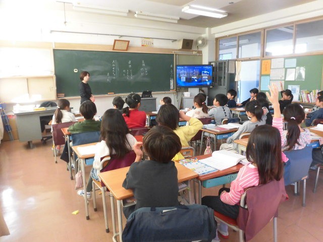 2年生の授業は国語です。主語と述語の学習です。何が主語と述語なのか、主語や述語がないとどう感じるのかなどをみんなで考えています。