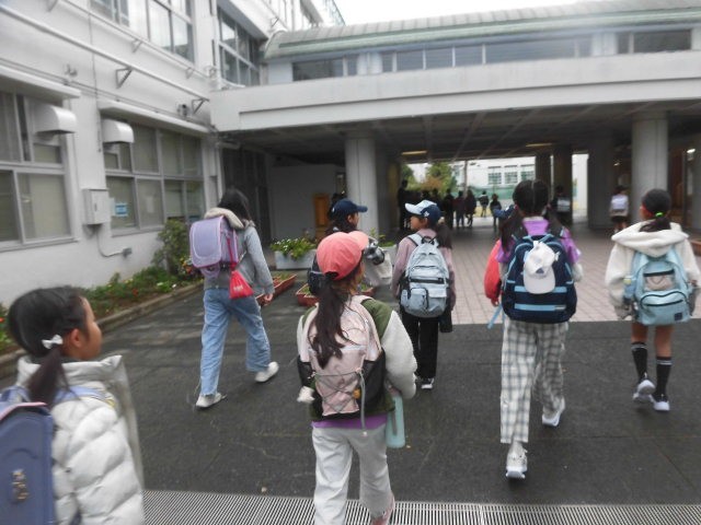 今日は4年生の社会科見学があります。楽しみにしているのでしょう。4年生がいつもより早く登校して、ピロティに集まっています。東京タワーの話をしている人が多くいます。「高くて怖くないかなあ。」そう言っている人もいました。