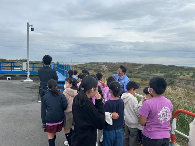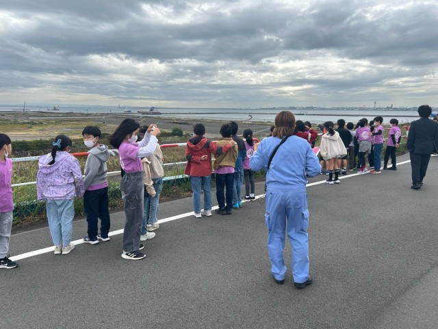 子どもたちが見ている新海面埋立処分場がいっぱいになってしまうと、もう埋め立てる場所がなくなってしまうそうです。