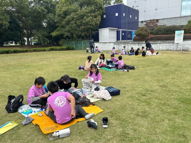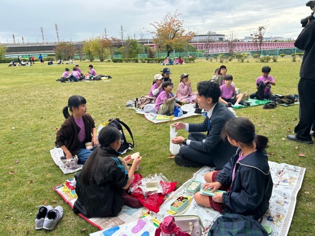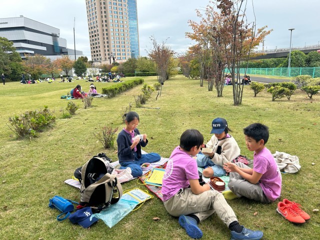 子どもたちはおなかぺこぺこのようです。さっとグループに分かれて、お弁当を食べ始めました。