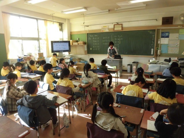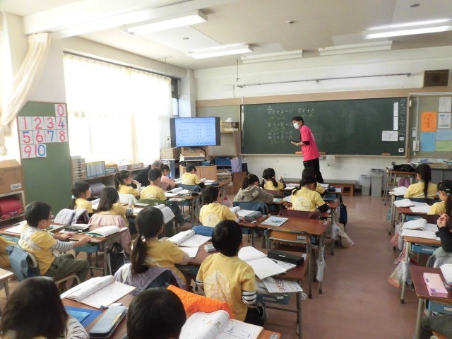 10のまとりまりをどのように作るかを考えながら、問題を解いています。問題をたくさん解いて、計算になれるようにしている1年生です。