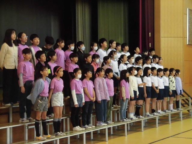 4年生は70周年記念式典の学年練習をしていました。記念式典にはオープニングの時間に1年生から4年生までが参加をします。4年生はよびかけや歌の練習を行いました。大切な式だということをしっかりと意識して取り組む4年生です。態度がとても立派でした。