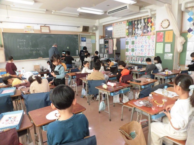 1年生の教室では、世田谷公園でおこなった「あき見つけ」の際に持ち帰った木の実などを使って、おもちゃ作りをしています。