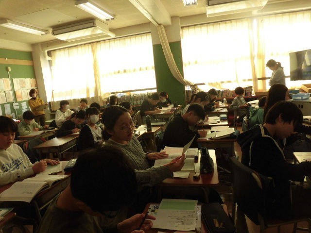 6年生の授業は国語です。説明文「鳥獣戯画を読む」の学習です。