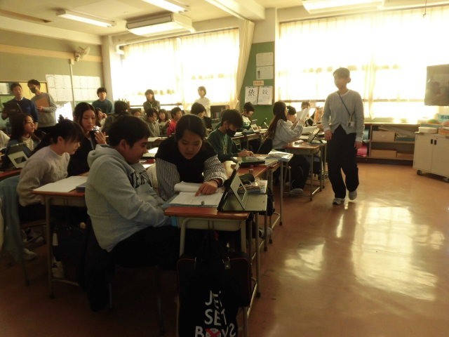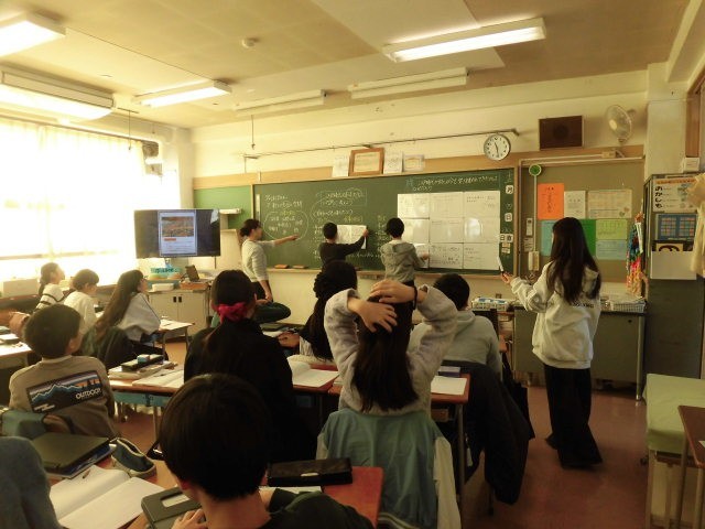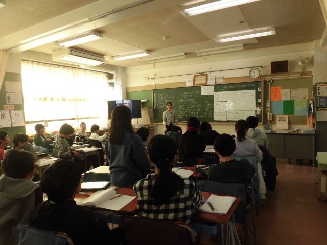 6年生の授業は社会です。歴史の授業です。江戸時代の町の人々の暮らしや文化についての学習です。