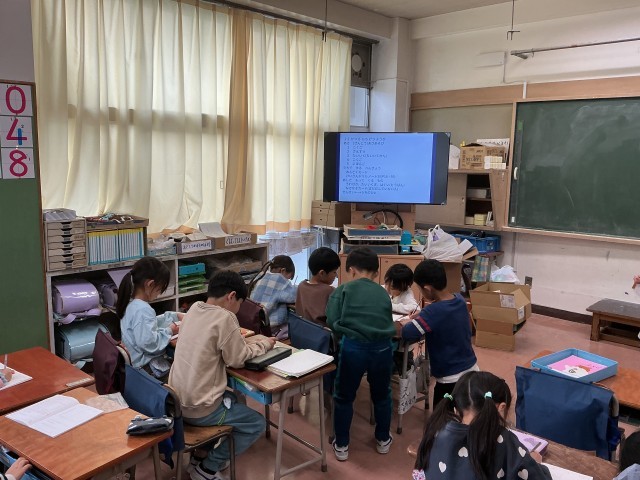 1年生は連絡帳を書いた人から国語の文章作りを行いました。